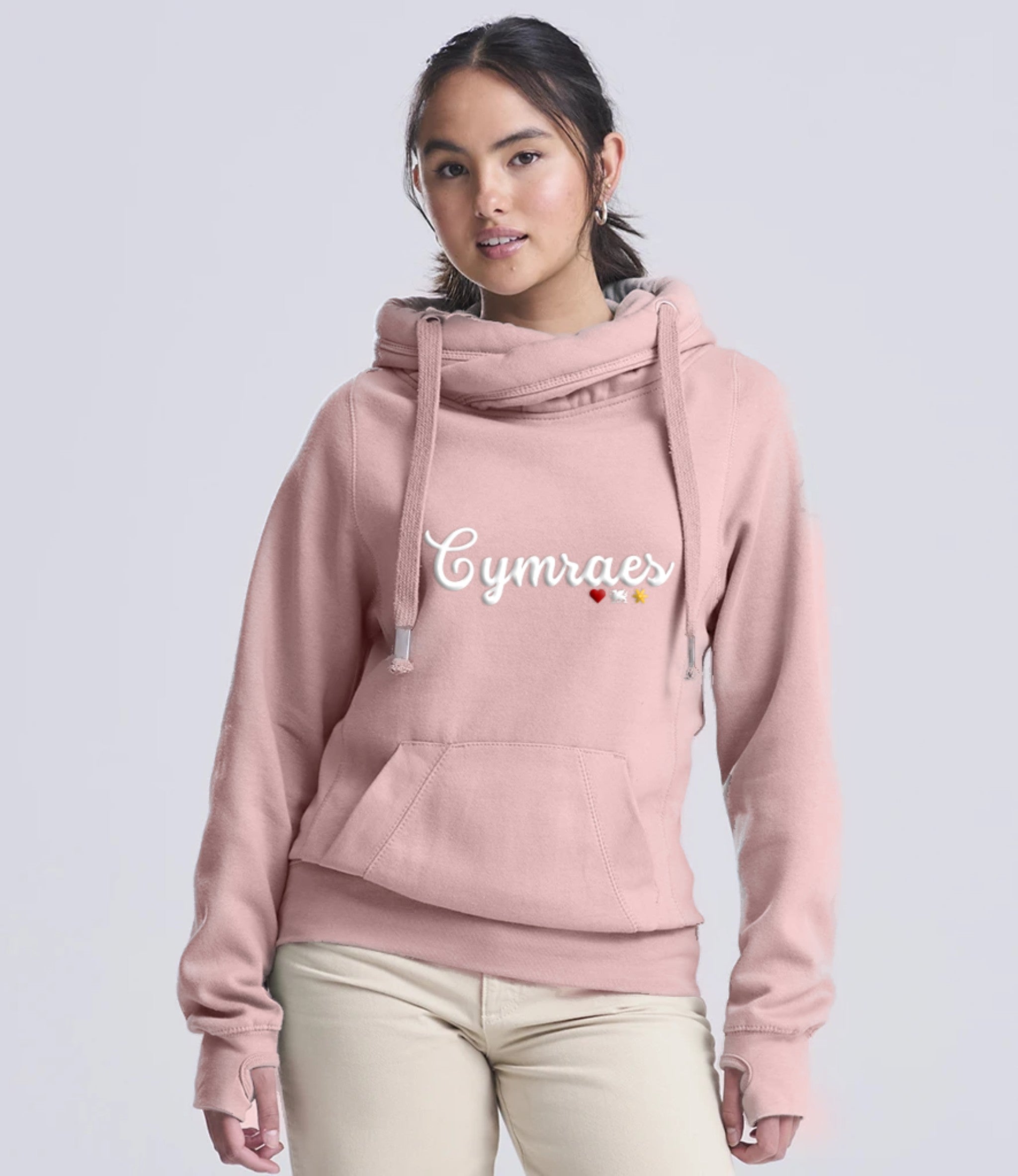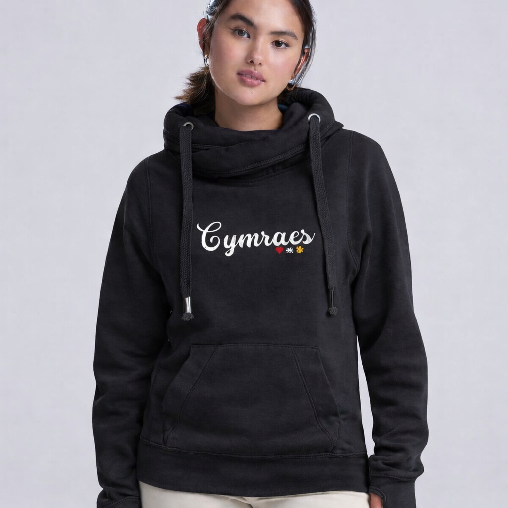 Cymraes Hwdi Croes-gwddf Premiwm Iaith Gymraeg | Dillad Cymraeg i Oedolion