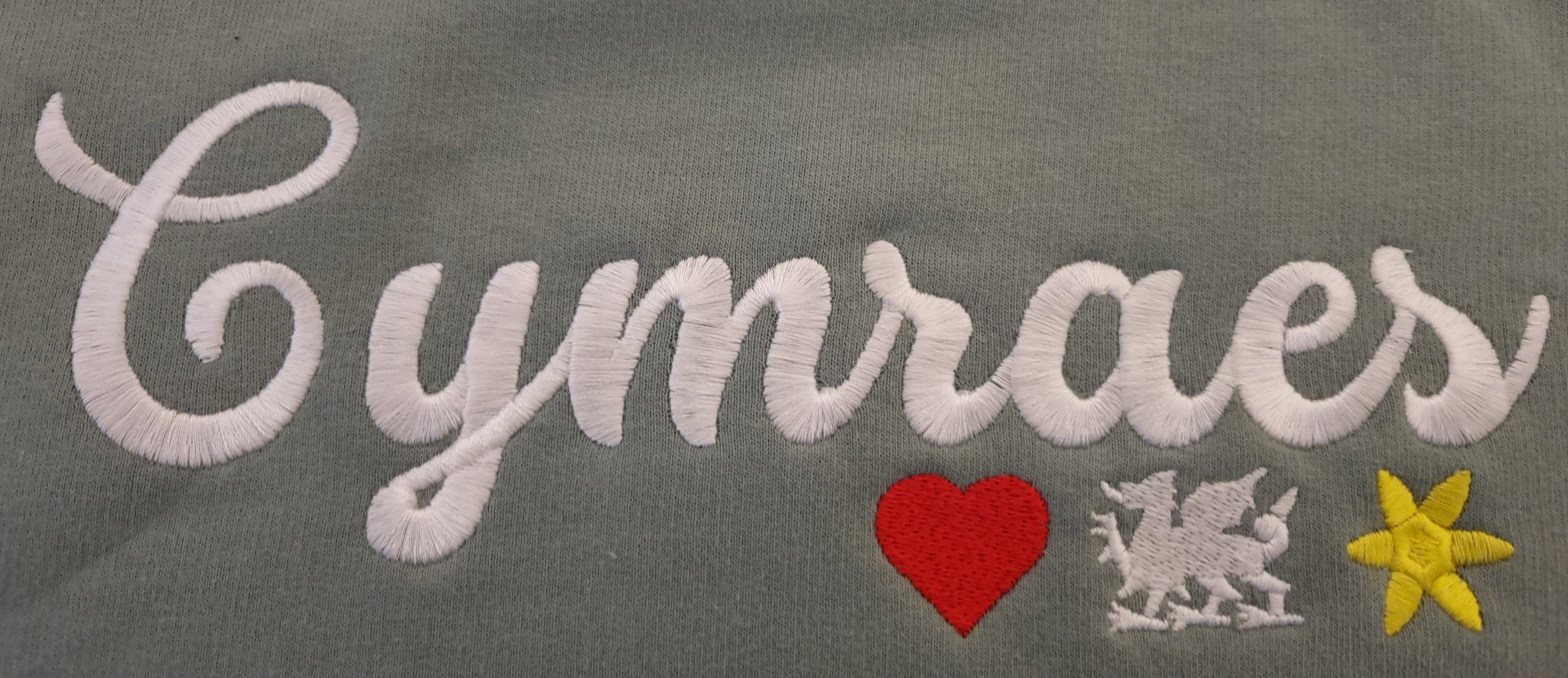 Mae pob hwdi wedi'i frodio'n broffesiynol yng Nghymru gan ddefnyddio edafedd o ansawdd uchel sydd wedi'u cynllunio i bara.