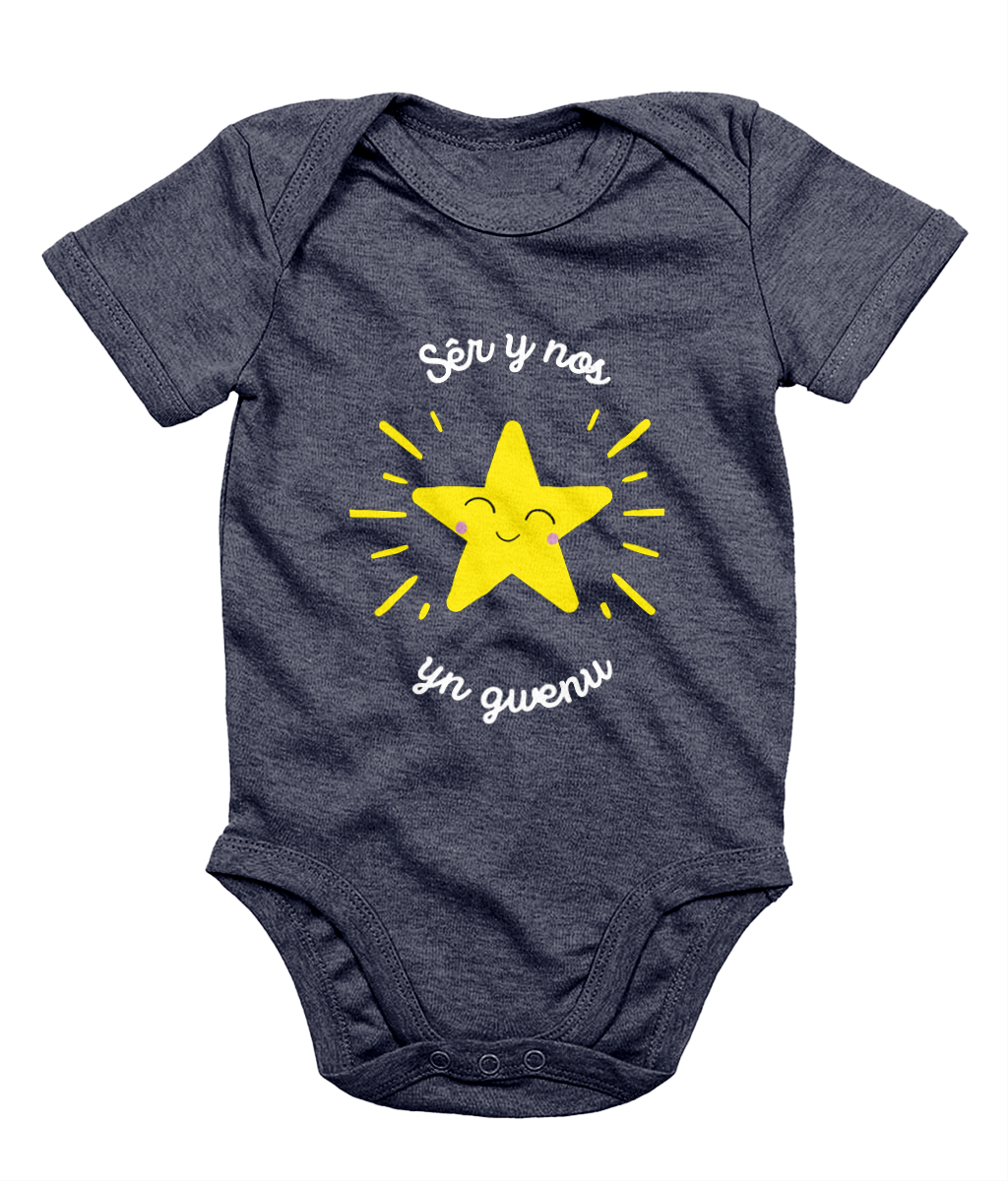 Sêr y nos yn gwenu - Welsh Christmas Sleeveless Bodysuit | Babi Cymreig