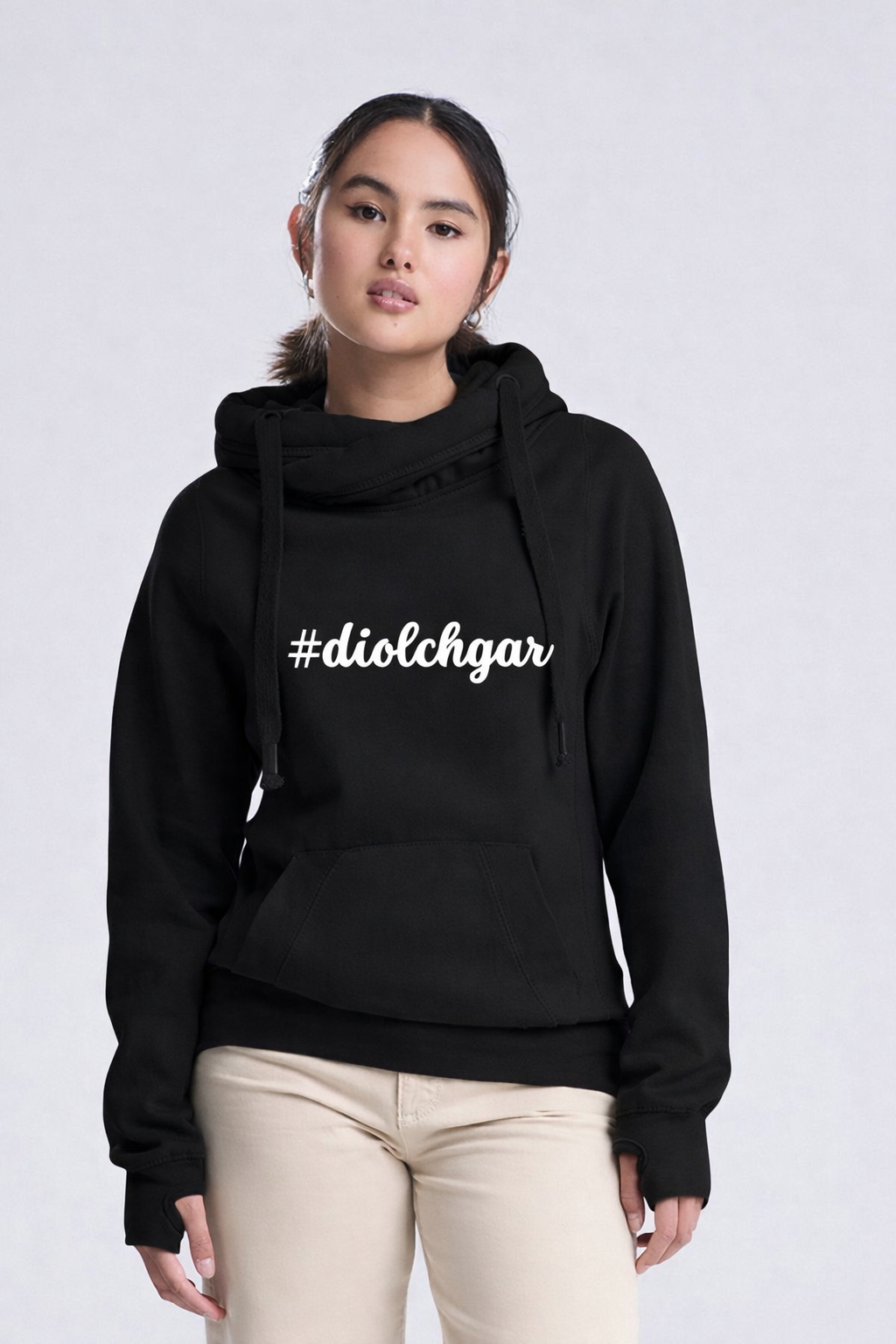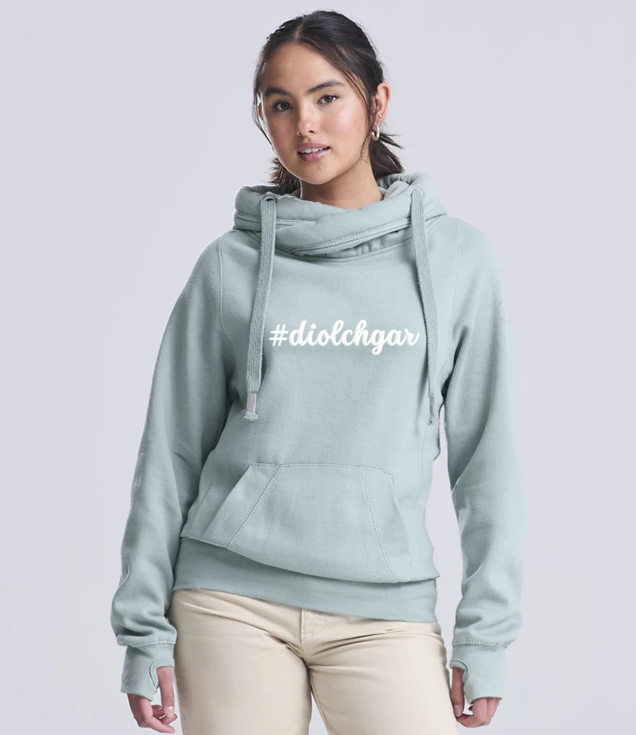 #diolchgar Premium Cross-neck Hoodie - Welsh Women's Clothing