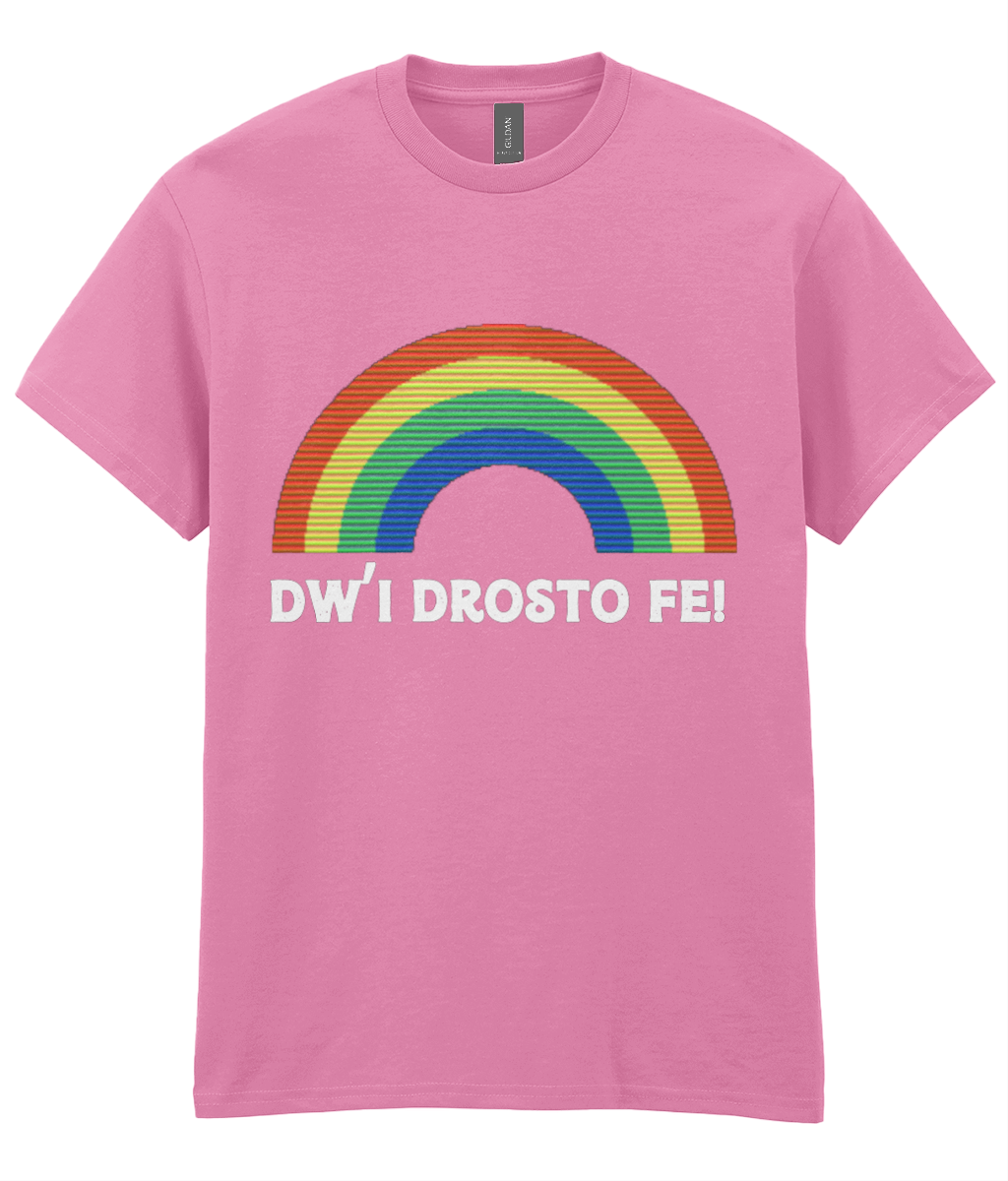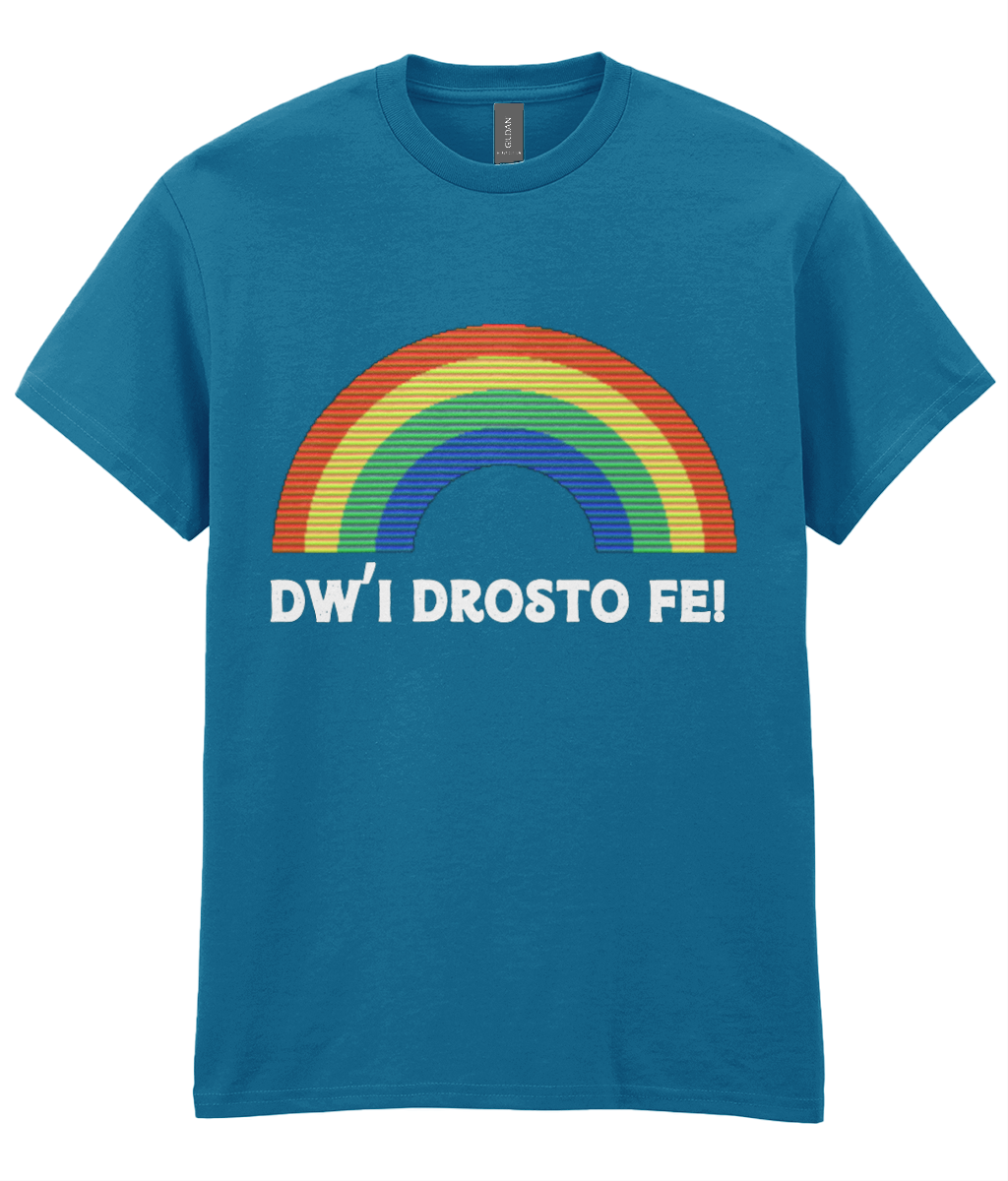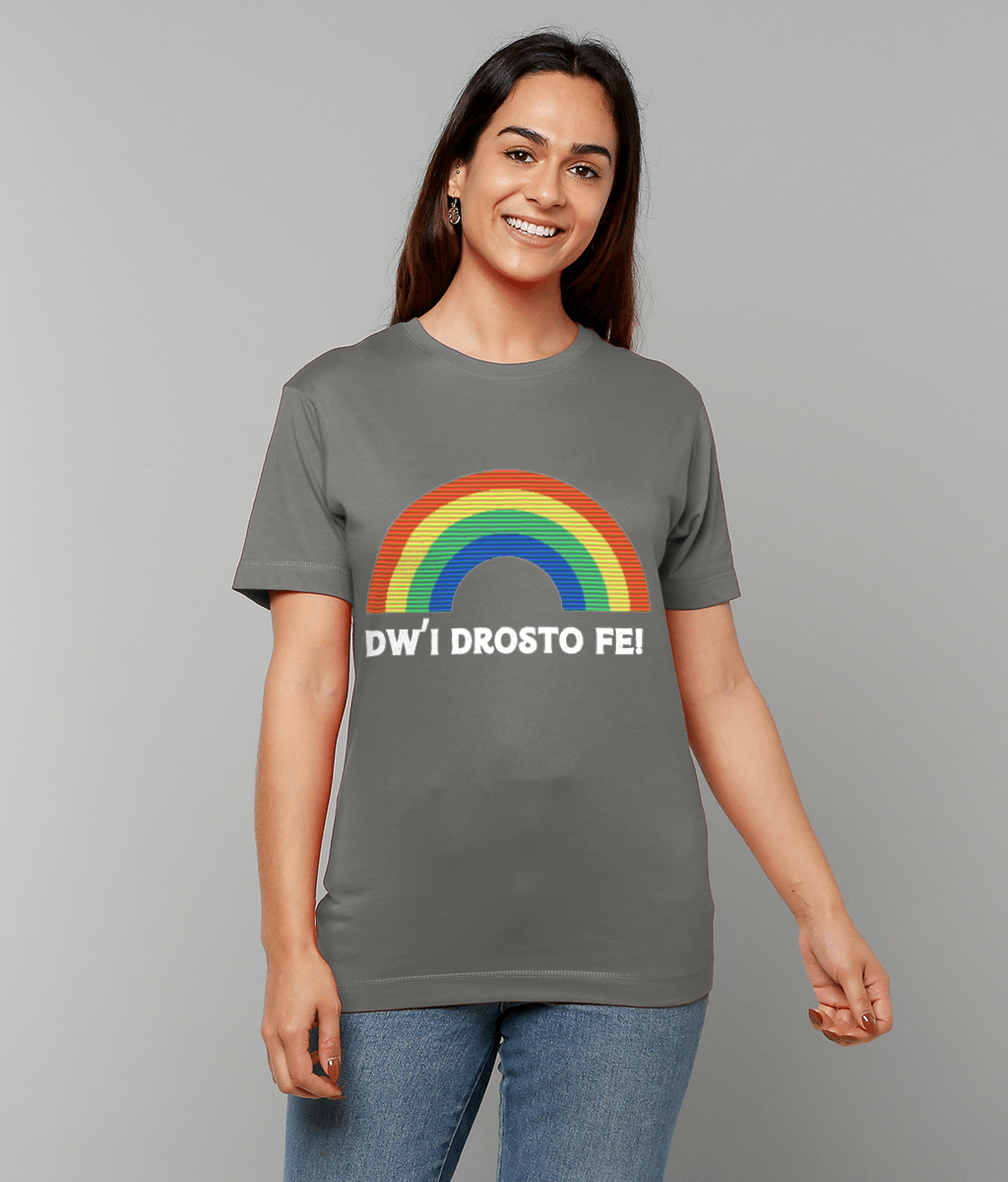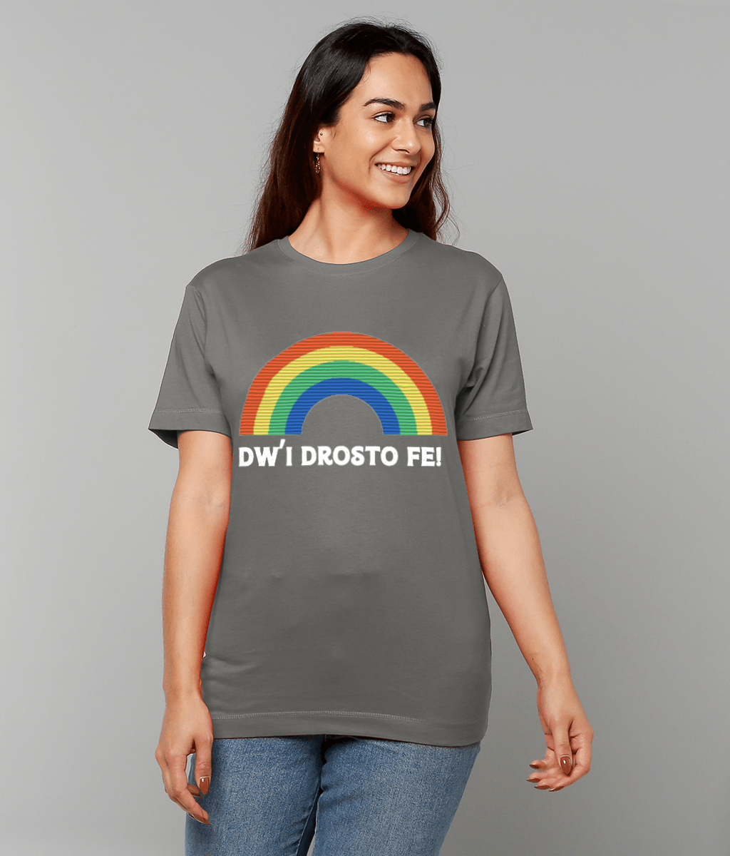 Add a playful touch to your wardrobe with the Dw'i Drosto Fe! Women's T-Shirt. Translating to 'I'm over it' in English, this cheeky Welsh phrase is paired with a colorful rainbow, making a bold statement. Crafted from luxurious 100% cotton jersey fabric, it’s smooth, gentle on the skin, and ultra-comfortable for everyday wear.